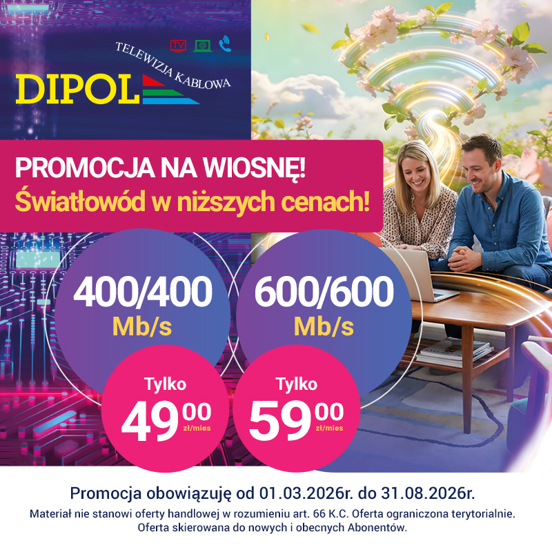 Telewizja w sieci TVK Dipol, to dostęp do cyfrowej telewizji z kanałami w jakości HD,